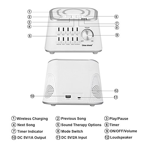 【Extra USB Output Charging & Warranty】- One extra USB output port for charging your electronic devices, smart phone, tablet, iPad; You will also get 12-Month Warranty, Risk Free Return Within 30 Days, 1 x S9 sound machine, 1 x USB cable, 1 x User Manual