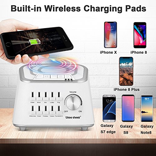ACEVIVI S9 White Noise Sleep Sound Machine with Wireless Charging and Bluetooth Audio Playing Functions, 10 Mixable Natural Soothing Therapy Sounds, Create Custom Sound Effect for Baby Adults