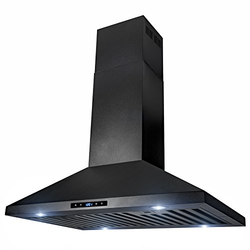 AKDY 30" Island Mount Black Stainless Steel Touch Panel Kitchen Range Hood Cooking Fan