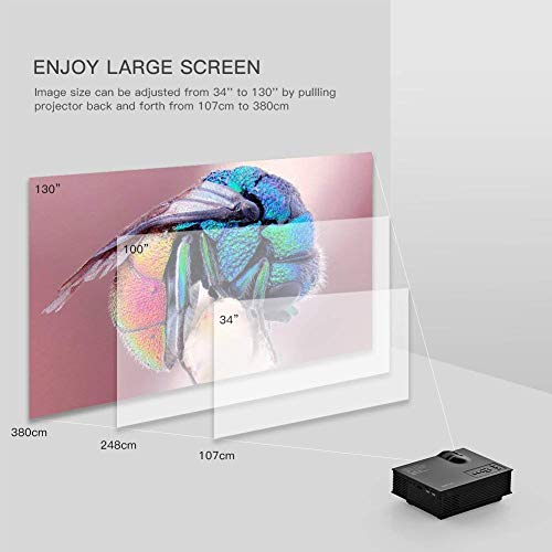 【Upgraded Lumens】Upgraded 2200 lumens provides bright image. Support 1080P, 16:9 and 4:3, high contrast rate. Use it total darkness to enjoy best image quality.【Multi-media Connection】 Connect to iOS, Android smart phone, Amazon Stick, Chromecast, laptop, TV, and other devices via HDMI port. USB port and SD card slot make videos, audios and images files readable