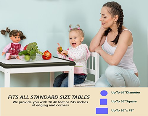 Size: 20.4feet Edge Guard Protection plus 8 Pre-Taped Corner Bumpers.. Over 22 feet coverage Color: Black Onyx Use In: Home, Hospitals, Schools, Preschool, Daycare, Work Areas, Senior Housing & Facilities, Nursery, Offices, Restaurant and more Contents: 20.4feet x 2 of 3M Edge Guard Tape to Cover Both Edge Strips, 20.4feet of Cushion Edging, 8 Pre-Taped Corner Guards, Door Stopper, Instruction SheetFULL COVERAGE: The Bebe Earth corner guard set helps babies and seniors avoid injury from sharp walls and tables with 8 corner covers and 20.4 feet of edge guard for over 22 feet of protection