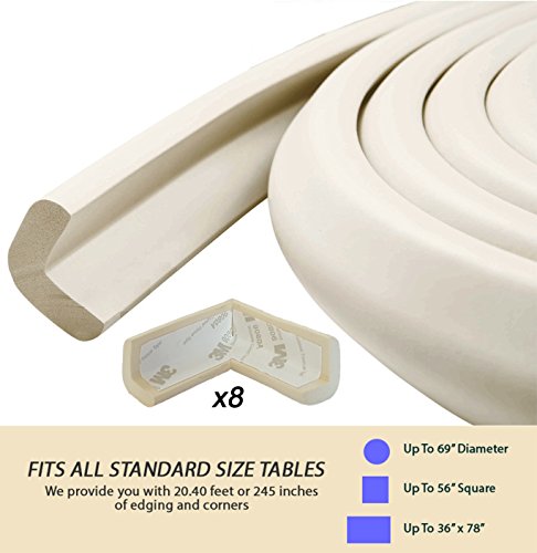 Size: 20.4feet Edge Guard Protection plus 8 Pre-Taped Corner Bumpers.. Over 22 feet coverage Color: White Use In: Home, Hospitals, Schools, Preschool, Daycare, Work Areas, Senior Housing & Facilities, Nursery, Offices, Restaurant and more Contents: 20.4feet x 2 of 3M Edge Guard Tape to Cover Both Edge Strips, 20.4feet of Cushion Edging, 8 Pre-Taped Corner Guards, Door Stopper, Instruction SheetFULL COVERAGE: The Bebe Earth corner guard set helps babies and seniors avoid injury from sharp walls and tables with 8 corner covers and 20.4 feet of edge guard for over 22 feet of protection