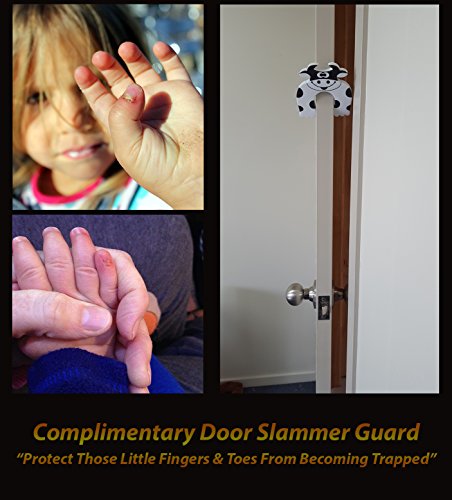 HIGH DENSITY: The soft, high density foam cushion absorbs the impact of contact with sharp edges; the kit also includes a fun animal-shaped doorstop to help prevent slamming or pinching kids fingers