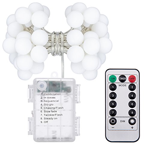 Scroll up to click the Add to Cart button to have your Globe Party String Lights shipped today.REMOTE CONTROLLER FOR 8 LIGHTING MODES: This Oak Leaf Outdoor Ball String Light provides 8 lighting modes: Combination (flash from mode 2 to 7 at random), In Waves, Sequential, Slo-gol, Chasing/Flash, Slow Fade, Twinkle/Flash, Steady On.