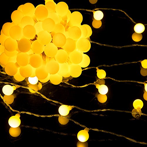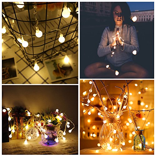 WARM WHITE COLOR & GLOBE SHAPE: 50 LED balls in total. Warm white color together with ball global shape to create romantic lighting effects, ideal String Lights for indoor as well as outdoor.