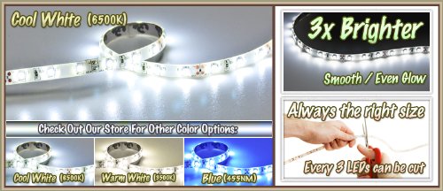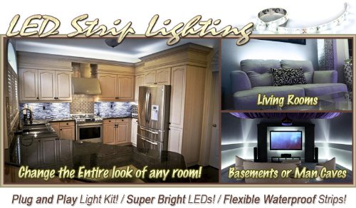 Plug and play light kit/ Super bright LEDs/ flexible waterproof strips this LED light strip kit is the be-all and end-all solution for All your home DIY lighting projects. Our light strips are made of dozens of incredibly bright 3528 SMD LEDs. The strips are then thoroughly coated in silicone to create a waterproof seal. Getting the right length of lights is always important, which is why our strips can be cut after every 3 LEDs to get the right length every time. Strip lighting applications: aquarium: main lighting, sub lighting, fresh water tanks, salt water tanks bed/bath: behind headboard, closet, make up counter, behind mirror, reading light, night light commercial: storefront windows, glass displays, DJ lighting, bar/night clubs, lighting, tool box lighting, roof lighting, tool shed lighting, truck bed lighting kitchen: under counters, microwave area, glass cabinets, floor lighting, above/below cabinets living room: behind TV, couch lighting, built in wall units, around fireplaces, floating shelves, picture frames man caves: sports memorabilia lighting, bar, theatre room, behind TV, liquor cabinet, aquarium, wine cellar office: under desk hutch, in drawers, bookshelf, reading light, glass case bright 3528 SMD LEDs, high intensity and reliability, waterproof flexible LED strip energy saving, low power consumption, low temperature, and long life span self-adhesive 3M tape backing for secure and easy installation. Every 3-LED is cut table without damaging the rest of the strip waterproof: silicone sealed LED strips (waterproof).Plug and play light kit/ Super bright LEDs/ flexible waterproof strips this LED light strip kit is the be-all and end-all solution for all your home DIY lighting projects