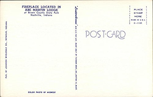 Original Vintage Postcard: Brown County State Park - Abe Martin Lodge, Fireplace Nashville, Indiana