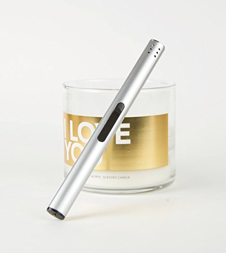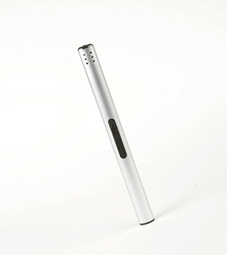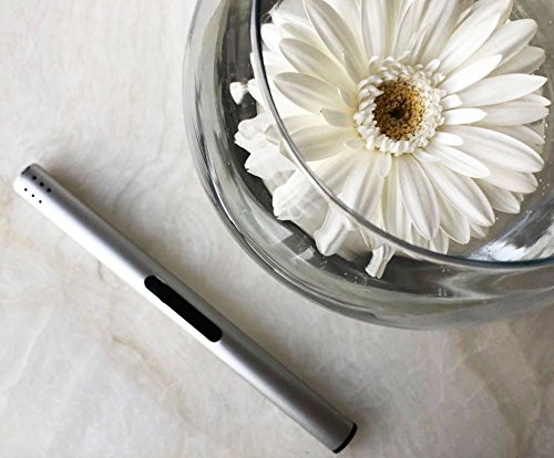 Butane Lighter with real flame for candles, fireplace, stove, BBQ, cigarettes, birthdays, Christmas, kitchen needs. Refillable - In Silver – Modern Elegant Design - Rechargeable