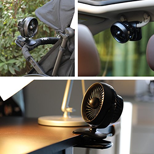 Swivel 360° & Portable For Anywhere. 7*5.5*3.8 inch (18*14*9.7cm), lightweight, handy, easy to carry and store, can be placed or clipped anywhere you want, with 360° vertical and horizontal rotation, you can enjoy the cool wind from any directions. Great for baby stroller, home and office, laptop, gym workout, outdoors, camping, trips, etc.