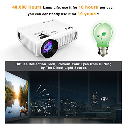 ❤ HIGHEST 840 X 480 NATIVE RESOLUTIONS: Supported resolution:1920*1080, Aspect Ratio: 4:3/16:9, Contrast Ratio: 2000:1, Lamp lifetime: 40000 hours, Watching Size: 32¡±-176¡± with projector distance 1.5m-5m.