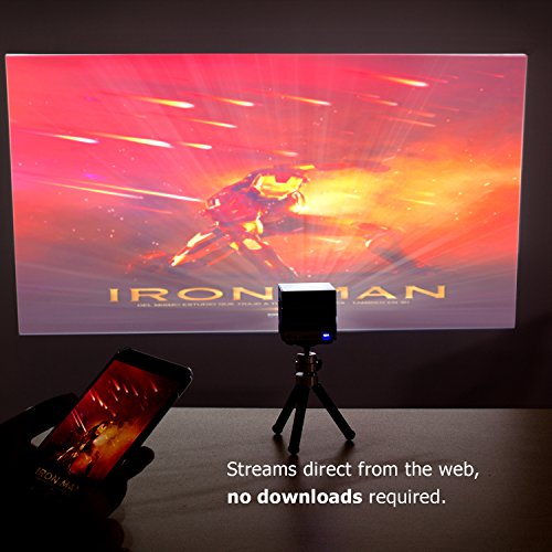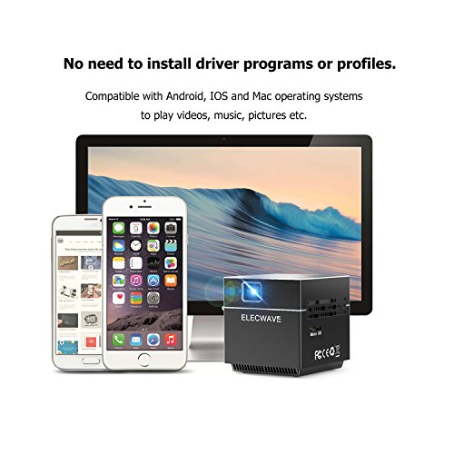 Elecwave EP02 Dlp Video 120 Inch Display 1080P, 100 Lumens Support Wifi Connection for Home Cinema/Game/TV Show/Ios/Android Smartphone, Mini Tripod Included Cube Projector