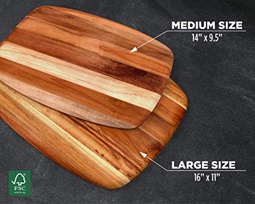 Our exotic and beautiful teak boards are FSC certified, meaning they are sustainably sourced (not from the rain forest). The board is 100% natural Teak wood, completely food safe, free of harsh chemicals. This board is larger than most cheese boards you will find, and at a wonderful price! This is sure to become a treasured family heirloom.