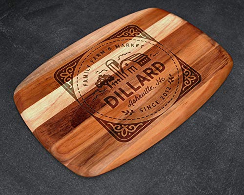 This Farmhouse Cutting Board is a wonderful decor piece for your farm inspired home! Our Personalized Teak wood Cutting Board is an elegant and unique piece to give a loved one, or yourself! These beautiful cutting boards can also be used as cheese boards or serving trays -- perfect for displaying at your parties and gatherings! The boards are slim and lightweight, with gently rounded edges, perfect for picking up and serving guests. Teak wood is a premium wood, known for its durability, longevity, and loveliness.