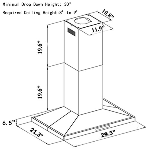 Golden Vantage Stainless Steel 30" Euro Style Island Mount Range Hood LCD Screen GV-GL-9002-30