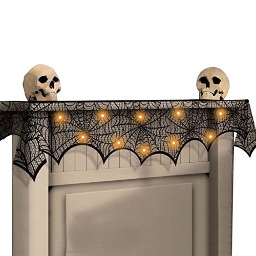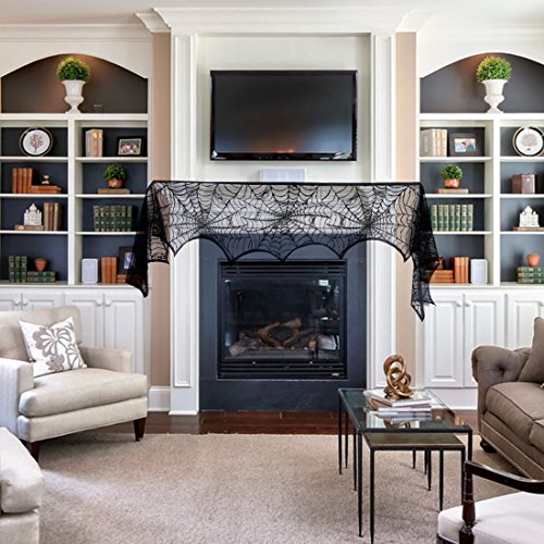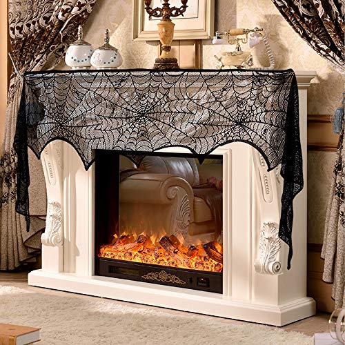 ✅ UNIQUE DESIGN:18 x 96inch black lace spiderweb fireplace mantle scarf features spider web design, soft spun polyester mantel scarf (not fireproof). Liner not included. Easy care.Seamless one piece design.