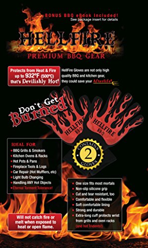 HellFire BBQ & Ove Gloves are Extremely Flame & Heat Resistant Barbecue Mitts with Silicone Fingers for Grilling, Smoker, Pit, Fireplace, Camping, or Kitchen Oven - EN407 Rated to 932 Fahrenheit