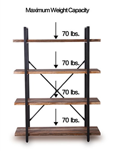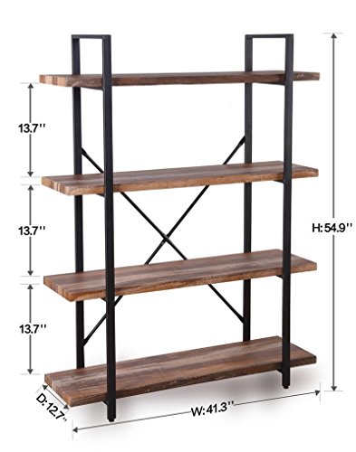 Homissue 4-Tier Industrial Style Bookshelf, Wood and Metal Bookcases Furniture for Collection, Retro Brown