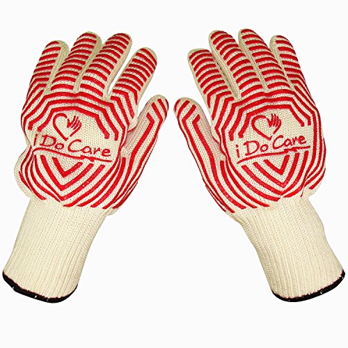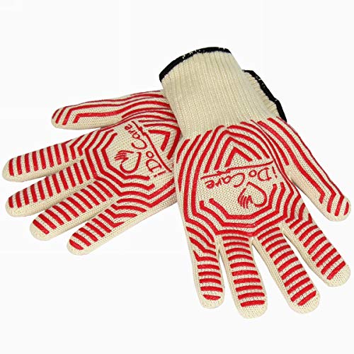 iDoCare Extreme Heat Resistant Oven Gloves, EN407 Certified BBQ Grilling Gloves With No-Slip Silicone Grips, Oven Mitts, FirePlace Gloves, Pot Holders - Best For Grilling, Baking, Cooking, Camping