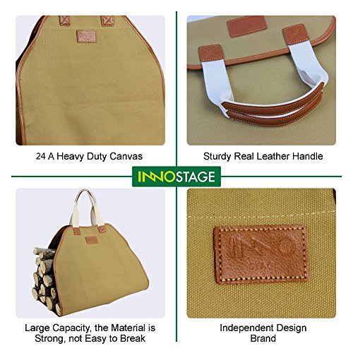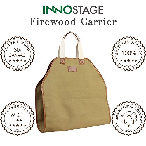 INNO STAGE Canvas Log Carrier Bag,Durable Wood Tote,Fireplace Stove Accessories,Extra Large Firewood Holder with Handles for Camping Khaki