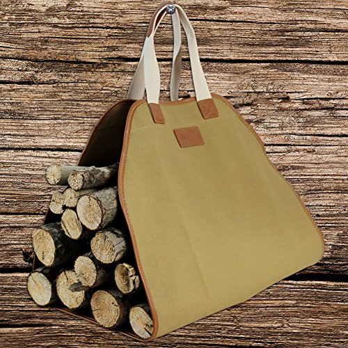 It is durable canvas material, stand up to the lifting load, can last for years.① OVERSIZED DIMENSION--44" L X 21" W ( not including handles),16% bigger than normal canvas firewood holder, with 6.7" handles, suitable size to carry.