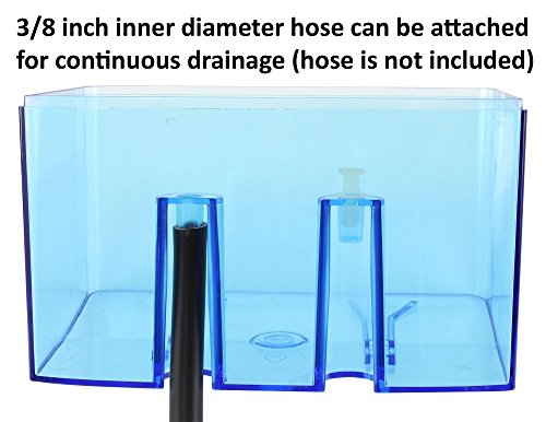 SAFETY FEATURES. Automatic shutoff when the tank is full. Easy to remove the tank to dispose of the liquid collected. The tank can be attached with a 3/8" hose (not included) for continuous drainage. The water tank can hold up to 2 liters / 0.5 gallon.