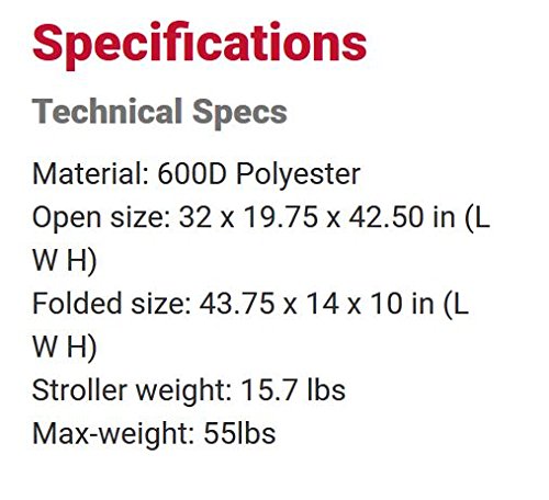 Lightweight aluminum frame, stroller weighs just 14 lbs. Open size: 32 x 19.75 x 42.50 inches ; Folded size: 43.75 x 14 x 10 inches
