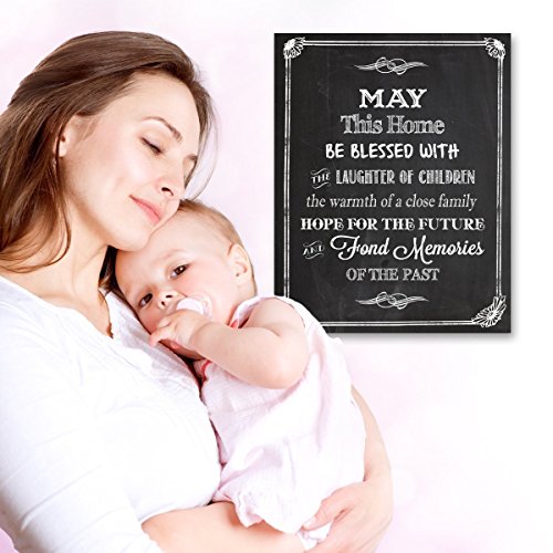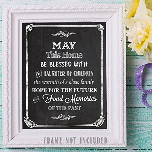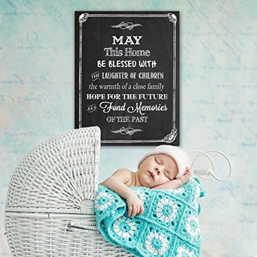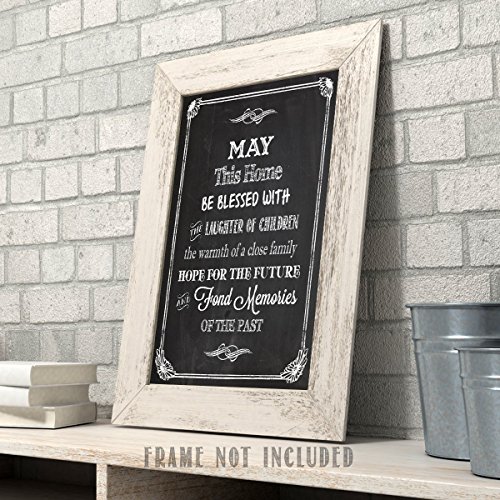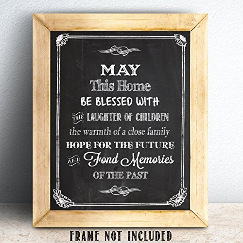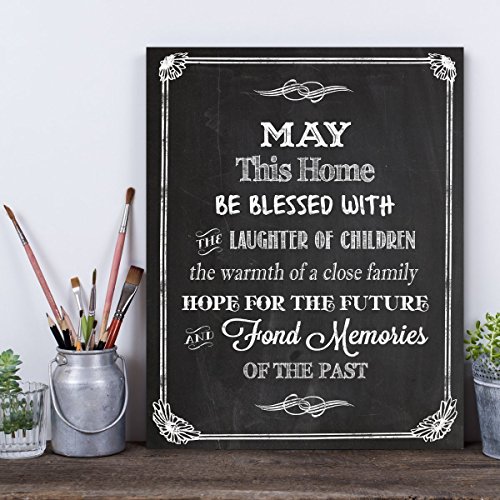 "May This Home Be Blessed" Inspirational Saying. This sign created by award winning artist Norm Lanier makes a great gift for housewarmings, weddings, birthdays, or various holidays. This sign measures 11" x 14". Looks like a real chalkboard but is actually printed on Fuji Crystal Archive paper for a lifetime of enjoyment. This gives you the choice to frame it in a standard easy-to-find 11" x 14" frame. Frame it and hang it on the wall or sit on top of a shelf.