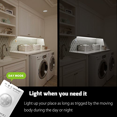 DUAL SENSOR MODE&SMART OPTIONAL TIMER: Exclusive motion sensor technology allows you to set sensor mode(Day/Night) & timer(15s/130s/380s) according to your personal needs. Unique DAY MODE can light up your place as long as trigged by the moving body DURING THE DAY OR NIGHT.