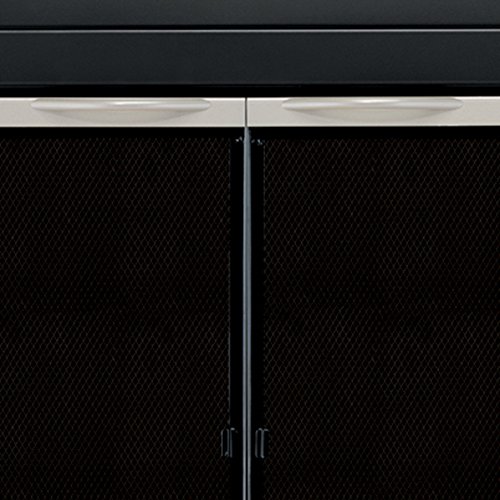 Mesh panels have easy-catch magnets and safety handles and help contain sparks and embers