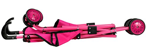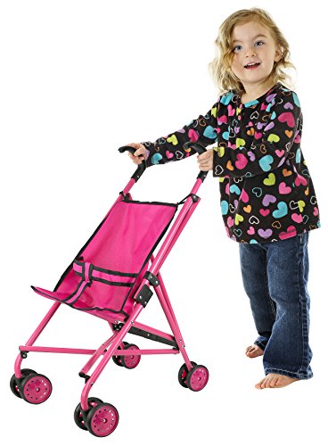 This "Precious Toys Doll Stroller" is with no doubt the best toy which can be given to our kids or as a gift. Our children will play for hours and use their imagination with this lovely "Doll Stroller". Not only for girls, but the boys will love it too with no exceptions! This "Precious Toys Doll Stroller" is constructed from high quality metal and fabric it also features swivel wheels and a seat belt. It will also easily fold and unfold, so when is not in use, it will not take up space in your home. We chose the most loved colors on our customers, our children.Hot Pink Doll Stroller, Black Handles and Hot Pink Frame Features swivel wheels and seat belt.