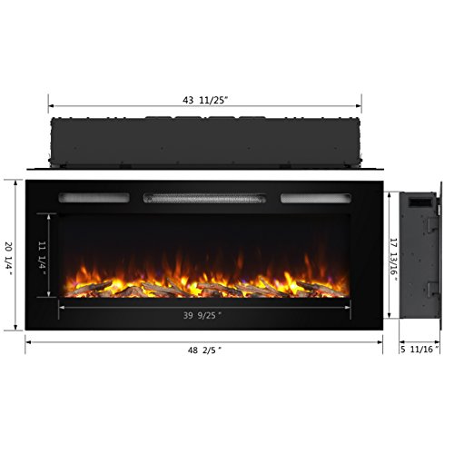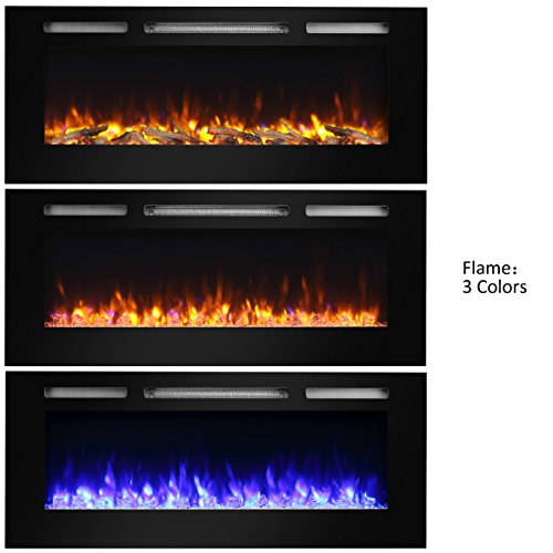 INSTALLATION: In-wall recessed installation, a perfect fit for 2 X 6" wall. Flush mounted. Two electrical connections: Plug-in or Hard-wiring. Just plug in 110V outlet and enjoyREALISTIC FLAME EFFECT: Ultra High Intensity LED lights provide very bright and realistic flame effect. Two options for ember bed: Log set or crystal stones to suit your need. Total 4 different flame settings cater to your desired ambience (1. Yellow with a little bit blue low brightness 2. All yellow brightness 3. Yellow with a little bit blue brightness 4. All blue brightness). The flame effect can be operated with or without heat for year-round ambience