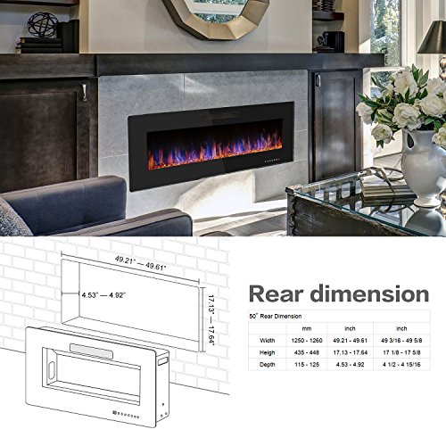 R.W.FLAME 50" Recessed Electric Fireplace,Wall Mounted & in-Wall Electric Heater,Remote Control, Adjustable Flame Speed, 750-1500W