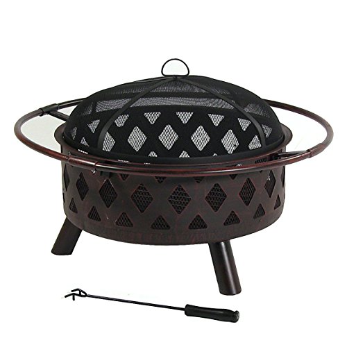 This outdoor fire pit will add charm and elegance to any patio, deck or backyard. Elegant in style, and functional in design, the Bronze Crossweave firepit is sure to please on all levels. Relax around the bonfire while enjoying the warmth without worries about sparks flying out when by using the included spark screen, the 30" firebowl is the perfect size for any fire and and has a convenient wood grate at the bottom of the bowl for firewood sit atop.