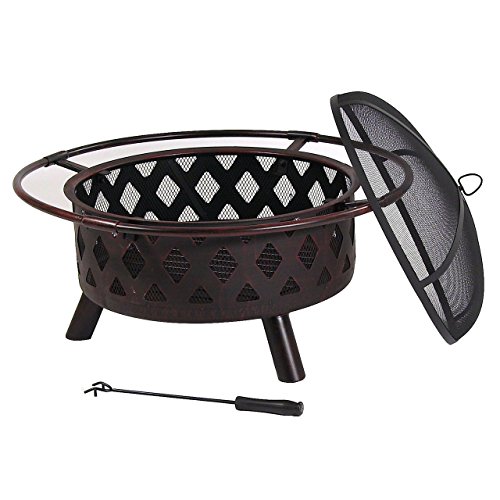 Sunnydaze 30 Inch Bronze Crossweave Wood Burning Fire Pit with Spark Screen