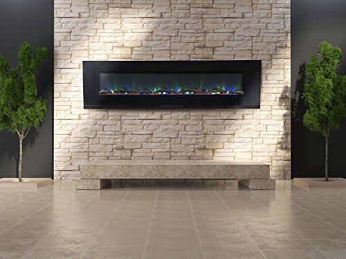 MULTIPLE HEARTH OPTIONS:REALISTIC LOG SET: Amaze your guests with the lifelike flames of this wall-hanging electric fireplace. Its realistic flames are set in a realistic log set design or crystals (both included) that lends the homey appeal of an authentic fireplace.