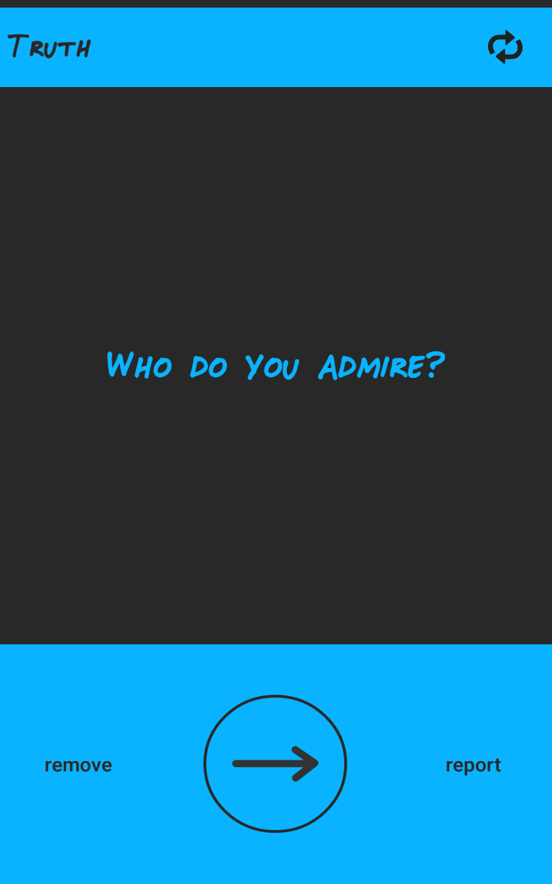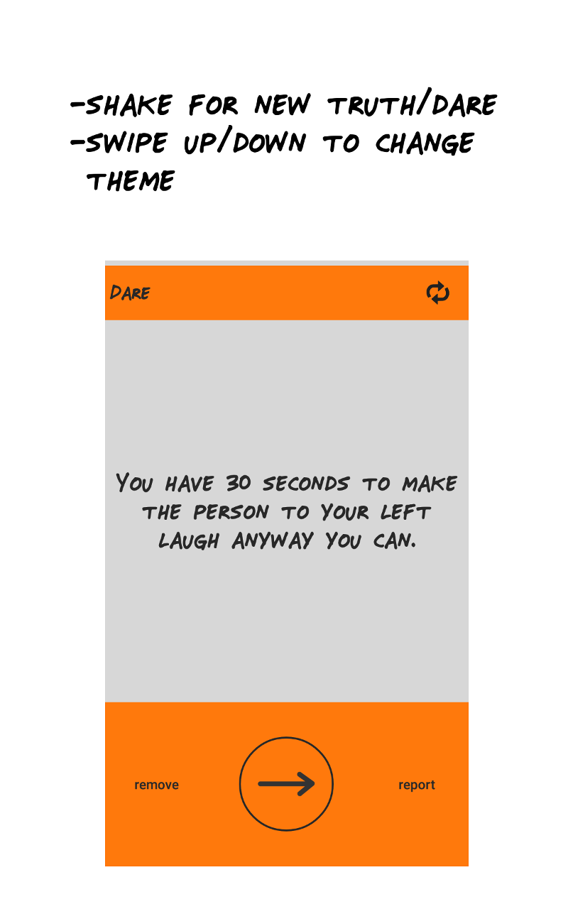 *Swipe Truth/Dare Question Screen (not home screen) up & down for dark/light mode.