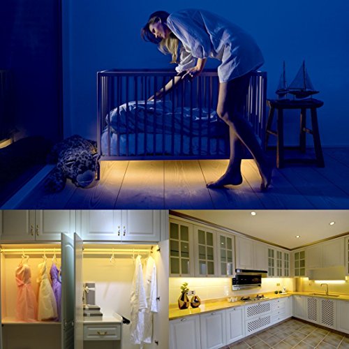 Under Bed Light,ALED LIGHT Led Strips Rope Light Kit with Motion Sensor for Baby, Crib, Bedside, Stairs and Cabinet (4 AAA Batteries Operated, Not Included) (2PACK)