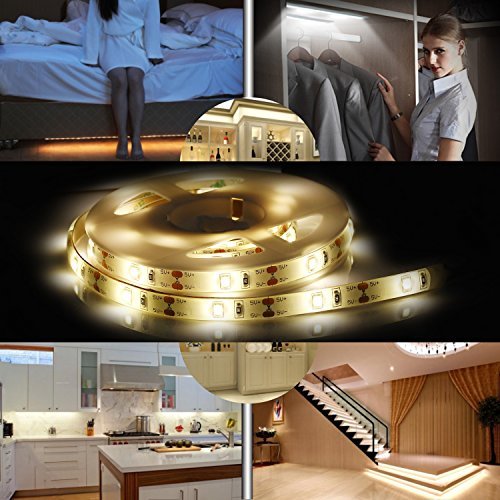 1. Bring Light to Your Home: Operated by 4 AAA batteries (no battery included), powered by 30 LEDs in the 3.28ft strip, the light strip Stick it anywhere even curved surface, Kids Rooms, Closet, Pantries, Attic, Drawer, Trunk, Hallways, Stairs.