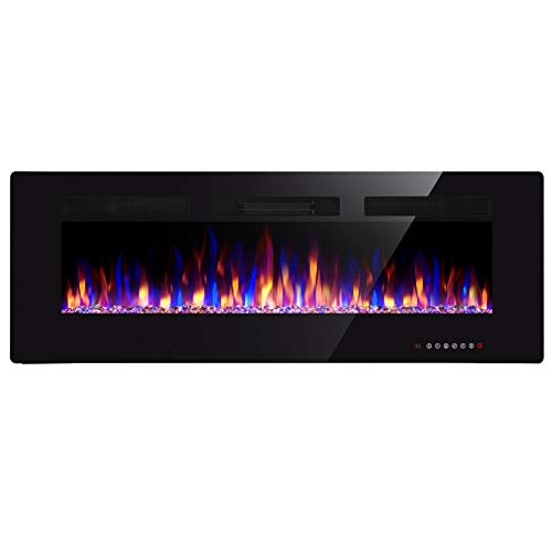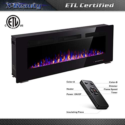 Xbeauty 50" Electric Fireplace In-Wall Recessed Wall Mounted 1500W Fireplace Heater Linear Fireplace Timer/Multicolor Flames/Touch Screen/Remote Control (Black)