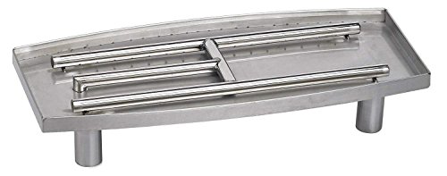 The 22 inch Oval Fireplace Pan Burner from American Fireglass offers a high quality gas burner for use as an indoor gas fire feature. The high quality 304 stainless steel construction ensures a long lasting and durable product that will withstand the heat of the burner while the tray design is perfect for holding the right amount of fire glass to create the ultimate contemporary fireplace look. The beautiful stainless steel finish offers an elegant finish to stand out as a unique fire feature while the burner itself is rated for 125,000 BTU to provide a bright and beautiful flame. The included automatic safety valve includes an On/Off remote control and features a pilot assembly that needs to be lit manually and will run continuously to provide an improved ignition process and the thermocouple monitors the flame presence and will automatically close the gas valve if no flames are present. This burner kit is designed for natural gas and includes the necessary components to install the burner with the safety pilot valve, as well as a damper to ensure this unit is vented properly.Indoor gas fireplace burner and pan for vented fireplace