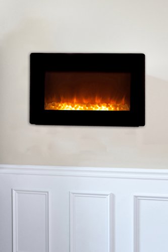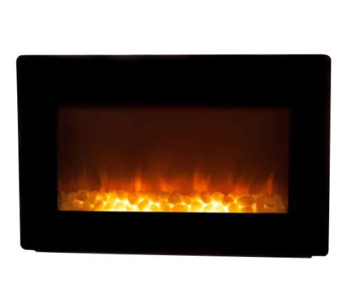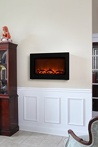 Add sophisticated ambience to any room with our Black Wall Mounted Electric Fireplace. This sleek unit extends a mere six inches from any wall. The modern black frame surrounds a wide realistic flame. The tempered front glass provides an astonishing reflective surface from which the fire comes alive. Adding even more romance to this perfect setting is the glowing ember bed. Included in this unit is a fully functional 1400-watt multiple setting electric heater. Comes with full function remote control.Full metal construction with glass front