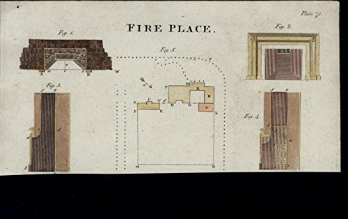 Fire PlaceInterior Design- Floor Plan- Dimensions Printed ca.1816-10, Oxford England. Charming small antique print with nice hand color. Printed on period paper as issued which shows typical mostly light signs of age wear from gentle handling, age toned resulting in a nice patina, remaining sound. An appealing, uncommon and interesting antique image which could readily be collected on it's own merits, displayed or given as a present. In Good to near VG or better antiquarian condition, mostly clean overall, light minor age dustiness or light surface wear, small scattered spotting or age soiling as seen, very interesting -- Please inspect enlargeable photo closely- any noteworthy flaws to the printed surface area should be noticeable within zoomable picture provided. This scan forms a central part of the item description and we encourage you to study it carefully. [note: We grade very conservatively. We are doing our best to show describe this item so you are happy when it arrives]. Despite any small age flaws, the printed area remains visually pleasing, and the print is well preserved. Overall a nice impression of an original and interesting antique printed image that any collector, dealer or person of taste would be happy to own or display. Sheet measures c. 7 7/8" W x 4" H. Engraved area measures c. 7" W x 3 3/8" H. [80616]Specialists for 30+ years in genuine authentic old maps, old prints & rare books.