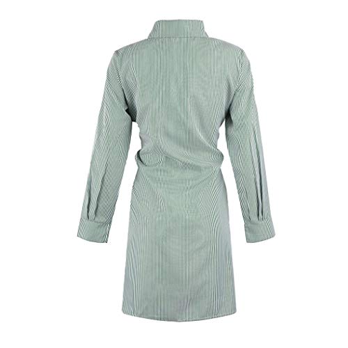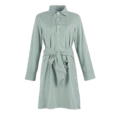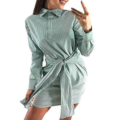 HYIRI Fashion Women Long Sleeve Striped Print Bow Bandage Mini Dress Shirt Dresses