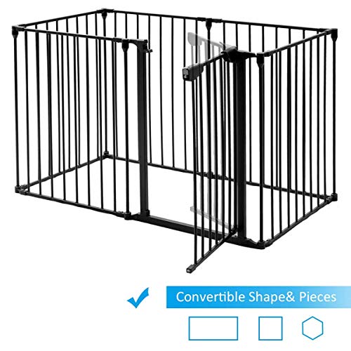 FOLDABLE & SHAPEABLE:Consist of 5 panels, 4 x Individual Panels: 25" x30"(L x W),1 x Door Dimensions: 17" x 29"(L x W),this fence is either foldable or extensible. Each section can bend at any angle (360 degrees) so it can be straight, U-shaped, L- shaped, or Z- shaped. Meet your various requirement on the process of usage.