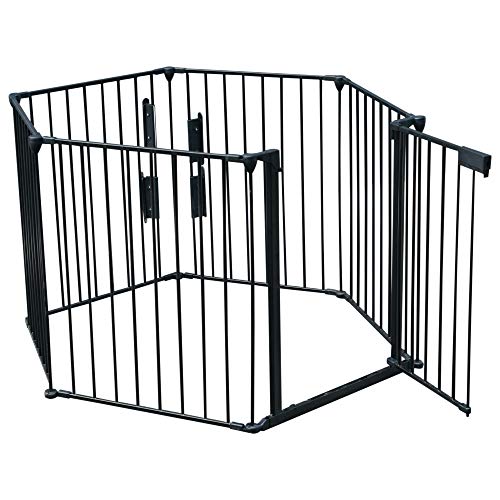 Safety Gate Fireplace Fence Hearth Guard for Baby Pet Dog Cat BBQ Metal Fire Gate Protection Fireguard 6 Sides(Black)