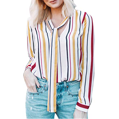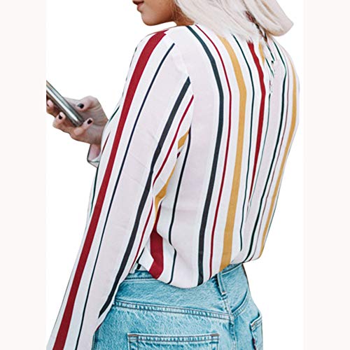 XOWRTE Shirt for Women V-Neck Long Sleeve T-Shirt Autumn Casual Cuffed Pullover Stripe Print Blouse Tops