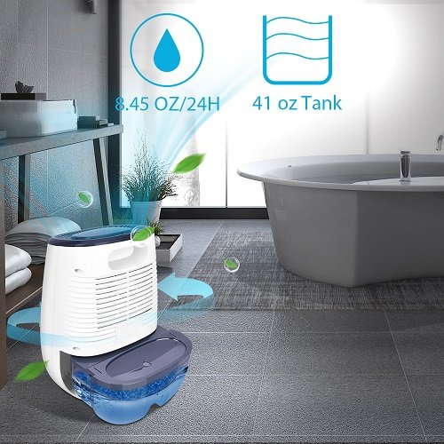 41OZ WATER TANK & SAFETY - Large Air Inlet and 41oz Water Tank Capacity, bathroom dehumidifier approved CE UL. DC 9V working voltage, rating power 30W allows dehumidifier lasts working time up to 48hrs and machine stay in a normal temprature, safe for home use.