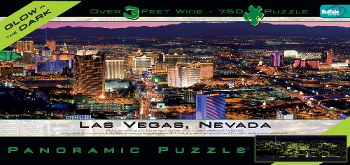 Las Vegas Glow in the Dark Panoramic Cityscape puzzle is a spectacular panoramic skyline of the Entertainment Capital of the World!The bright lights of Sin City will truly be a glow in this breathtaking puzzle.When assembled, this puzzles measures over 3 feet long. You'll have a bird's eye view of the city's famous sights.This 750-piece puzzle assembles to 38 1/4x 11 1/4 .Stunning panoramic photography from around the United States