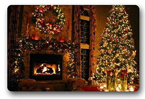DFLJ Standard-Store Custom Cartoon Cute Design Christmas Fireplace Machine-Washable Non Slip Absorbs Mud Doormat Door Mat Rug Carpets Indoor/Outdoor Non-Slip Rubber Backing 23.6 X 15.7 Inch