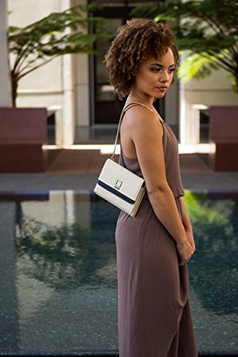 Sophisticated lightweight clutch that has classic lines with a modern approach | Display the Nikina as clutch in the evening, or standout in business, work, travel, or everyday use | Keep items secured, and nearby using the vegan leather, or the double accented metal straps for a secure shoulder fit